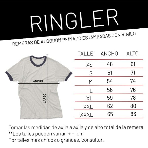 - Para saber el talle recomendamos medir en una superficie plana, una remera que te quede cómoda. De axila a axila y de alto total. Comparar con nuestra tabla y elegir en el menú desplegable.